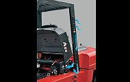 重心后移,整車(chē)縱向穩(wěn)定性提高,高位作業(yè)更穩(wěn)定。 標(biāo)準(zhǔn)車(chē)配置機(jī)罩安全鎖扣,保證了操作人員的安全。 |